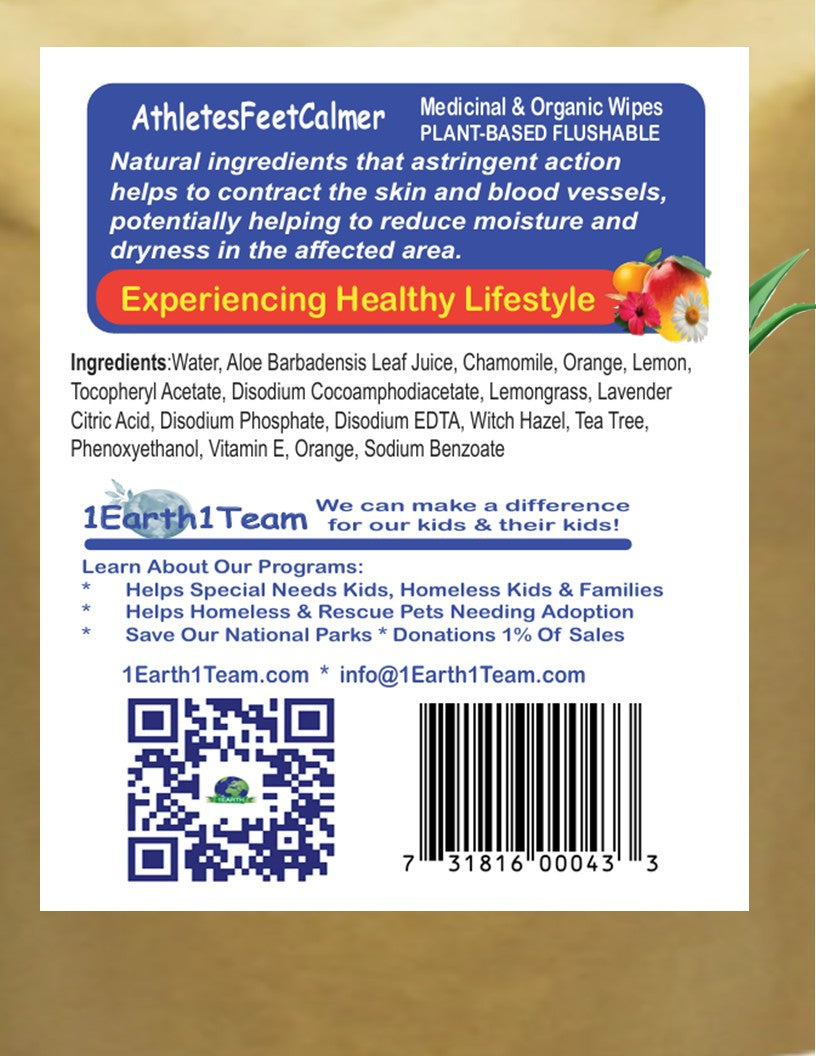 Medicinal Wipes, AthletesFeetCalmer, 1Earth, Pack of 16