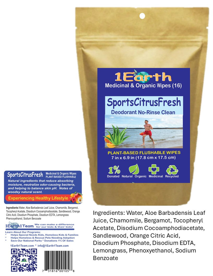 Medicinal Wipes, SportsCitrusFresh, 1Earth, Pack of 16