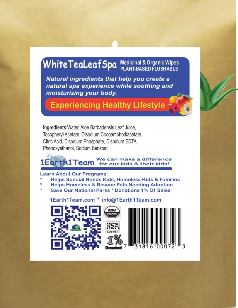 Medicinal Wipes, WhiteTeaLeafSpa, 1Earth, Case of 6 Packs of 16 (96 Wipes)